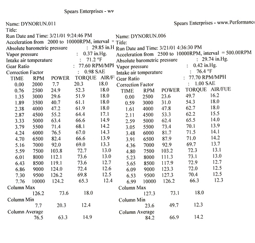 Below you will find both the dyno comparison as well as the correction factor data sheets.