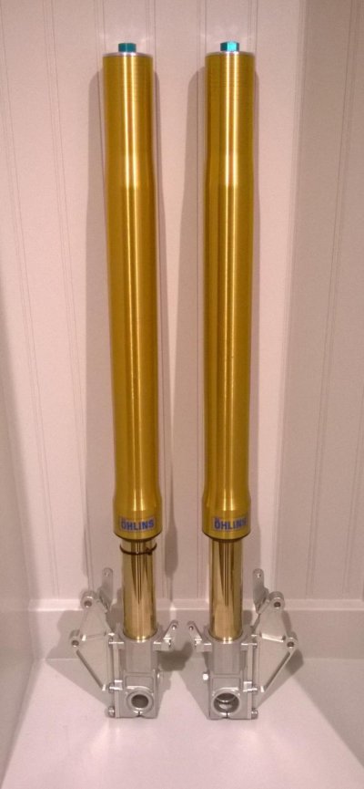 manuals and service Here are the related manuals for Ohlins forks for the RC51. Installation FG832. http://www.ohlins.com/Products/Mount...s/MI_FG832.pdf FG322. http://www.ohlins.com/Products/Mount...s/MI_FG322.pdf A guide to set sag. It is in the box down the page. http://www.ohlins.com/Checkpoint-Ohl...Underrubrik_1/ Service http://www.oehlins.ch/data/120833633...04AR&TFG43.pdf http://www.oehlins.ch/data/120833721707282-02R&TFF.pdf http://www.ducati.ms/forums/attachme...43-service.pdf General tool manual http://www.resuspension.com/assets/Tool%20Manual.pdf Check the service manuals to see what tools are needed for service. A variety of suspension shops will sell Ohlins tools. Kyle USA sells Ohlins tools and they have also made some tools for Ohlins forks in-house that are a less expensive option. I recommend speaking with Kyle USA about tools for the FG832 and FG322 RC51 Ohlins forks. Advice on buying used forks Never trust any Ohlins forks (or any forks for that matter) with "upgraded internals or valving" WITHOUT PROOF. A few unfortunate people I know have trusted the seller and ended up with nothing but stock parts upon tear-down. Forks have even been sold along a couple times this way before finding out the truth, so it may not intentionally be the sellers fault either. For proof, service pictures are a start, but not direct evidence. An invoice would be great (and one could phone to confirm it). Also the original parts pulled from the fork would be great. If Ohlins FG832 or FG322 forks have a valving upgrade, confirm which superbike valve kit they have. As mentioned earlier, there are now two sets of superbike valve options: the older obsolete 3200-25, and the current 3200-27. The current 3200-27 kit is the most desirable upgrade. Again, look for PROOF. I am the only RC51 owner with the 3200-27 kit at this moment, but currently four other RC51 Ohlins fork owners have shown interest in upgrading their valving. It's crazy IMO to spend a lot of money on upgraded suspension, but then not spring it for yourself. A mismatched spring notably impairs the performance of upgraded suspension, defeating the purpose of "upgraded suspension". As mentioned before, upgraded suspensions use linear springs which are better for overall suspension action, but they work for a notably narrower weight range than OEM progressive springs. People always talk about respringing a rear shock to match a rider's weight when buying used or new. The same thing applies to any Ohlins front suspension or forks. Ohlins forks should be sprung for a specific rider's weight. The previously installed Ohlins springs may work, but the owner needs to know what springs are in their forks and if the springs suit their weight. When buying used, consider what servicing has been done, when it was done and the mileage on it. Front suspension should have maintenance. So recently serviced Ohlins forks and front suspension as well as lower mileage units should have a higher resale value, and justifiably so. Again, look for proof of the work. Closely determine and consider all aspects of any forks for sale. Examine the condition, parts (complete or missing parts), upgrades (what they are and proof of them), servicing (proof), mileage, even boxing. Upgrades may include a few valving options, correct weight springs, additional springs, upgraded bolts, additional caliper brackets, etc. All of these aspects and considerations contribute to the price, so take all of them into account. Also, having an Ohlins shipping box is a significant advantage imo. Superior to ship for the fork purchase, and to use for any work or servicing on the forks at a later time. Over a long ownership, the box can be used multiple times. There are similar prices on the used market for both Ohlins FG832 and FG322 RC51 forks. Ohlins FG832 and FG322 forks do not come up for sale very often and demand for both of them is high. In general, many people purchase whichever model they can find available. The one significant difference between FG832 and FG322 forks are the brake caliper mount designs (discussed earlier). On the used market, FG322 forks may currently sell for a few hundred $$ more than FG832 if they are otherwise identical (related considerations as mentioned earlier include valving upgrades, condition, servicing, completeness, mileage, other items provided, etc). In reality though, it is difficult to compare prices because invariably there are differences in all of the considerations. As such, sometimes FG832 forks may be worth significantly more money than FG322 forks, and vice versa. And comparative prices may change in the future with all the variables discussed earlier. With high market demand and very low supply (which will further decrease over time) these used Ohlins forks made specifically for the RC51 go for high prices, with little to no depreciation through ownership at this time. The current used price for FG832 and FG322 forks range from $2000 to $2500+, depending on all the previously mentioned considerations. However, prices may change over time. So, as this thread gets older (it's current to 2014), do not consider that price range accurate. Instead, an easy and great way to get a reasonable current used price estimate is to search the various RC51 forums too see where used prices are at for Ohlins FG832 and FG322 forks, noting the related considerations. You may have to go back a few years or even more to get a decent sample size and estimate used prices. Fork work for options in this guide Much of the fork work for the options in this guide can be done by numerous shops (not the 30mm NIX upgrade though). However, considering the money a person will invest in these upgrades, I recommend using Kyle USA for the work. They are the Ohlins experts for the RC51 and have vast experience doing this work for the RC51. They also have very good pricing for the parts and labour. Visit their website for more information, or call them. Much of the infor