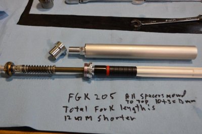 FG322 forks The Ohlins FG322 forks came out around 2005. The internals are very similar to the FG832 with subtle part # differences due to changes in the FG43 fork line. The significant change was incorporating the new radial brake caliper bracket mount design where the caliper bracket attaches to the bottom of the fork tube. The original Ohlins supplied brackets are for the OEM RC51 axial brakes. The advantage of the FG322 updated caliper mount design is that it makes the caliper brackets better suited to custom radial brake applications, with less flex (than the FG832 design). Unfortunately, Ohlins no longer supports any caliper bracket applications for these the FG322 forks; there is no way to purchase new or replacement Ohlins axial or radial caliper brackets. And there is no significant aftermarket supply of custom-made axial or radial caliper bracket options for the FG322 forks since Ohlins stopped. This currently makes the used market for FG322 caliper brackets extremely tight and rare. High prices are also found with new and used FG322 caliper brackets (as compared to the less expensive FG832) because of their complex design and rarity. While there has not any significant aftermarket support for custom-made axial or radial caliper bracket options for the FG322 forks since Ohlins stopped years back, there recently was an opportunity (summer 2014) to have caliper brackets made. Sbkdrew got a small manufacturing run to committed buyers of some custom-made radial caliper brackets for the FG322 forks. It is unknown if this will continue into the future. Sbkdrew deserves much credit for this opportunity. More information on sbkdrew's work and discussion with other members can be found here. http://www.rc51forums.com/forums/showthread.php?t=34778 Full CAD drawings of the Ohlins FG322 RC51 forks can be found here. You may need a google account to access and download. https://docs.google.com/file/d/0B5JI...F2a1dDdm8/edit Ohlins Spec Sheets: |